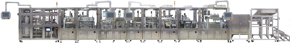 ST01:自動(dòng)理瓶 → ST02:正反面調(diào)整 → ST03:載具上料→ ST04:灌裝 → ST05:裝硅膠片 → ST06:瓶口熱壓 → ST07:熱壓檢測(cè) → ST08:噴碼 → ST09:下料輸出